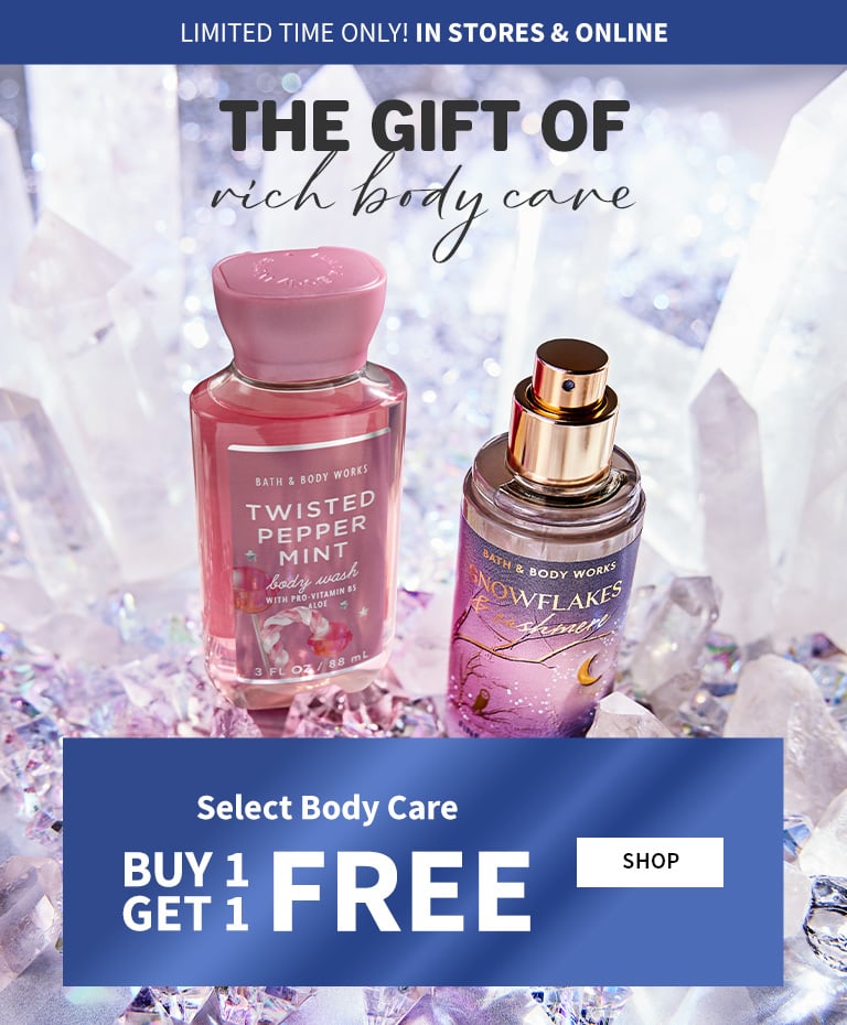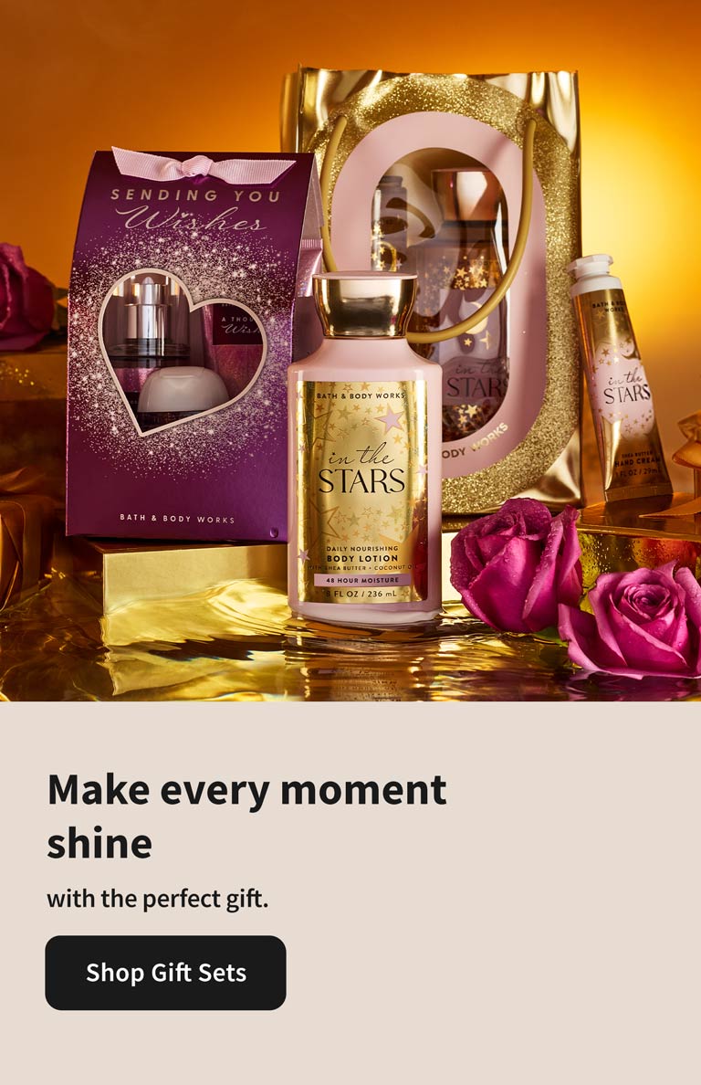 Bath and Body Works is your go-to place for gifts & goodies that surprise & delight. From fresh fragrances to soothing skin care, we make finding your perfect something special a happy-memory-making experience. Oh! And while you're browsing, shop our latest & greatest selection of lotions, soaps and candles!