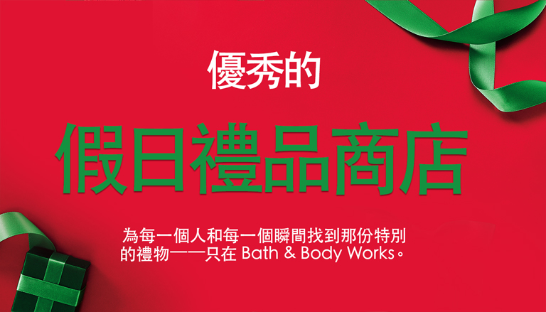 Bath & Body Works 可幫你找到適合各種場合的完美禮物。給她的禮物、給他的禮物——我們有各種送禮佳品,讓收到禮物的人感到自己身分特別。需要生日禮物嗎?我們有個好主意!吃完蛋糕後,給喜歡香氣的生日女孩或男士送上他們真正想要的蠟燭——他們最喜歡的三芯蠟燭!愛神隨時都可能會出現放箭!瞄准情人節禮物,為你最親密和最親愛的女生男生送上最熱門的香水。想找母親節禮物?我們的 DIY 禮品包和香氣禮品套裝是很好的選擇。送上媽媽最喜歡的家用香氣和滋養皮膚的身體護理產品,她一定會大受感動。是時候為父親節禮物增添驚喜了!不再送父親節領呔,改送父親節香氣套裝吧。爸爸已經有很多領呔了——他值得擁有他最喜歡的香味!在我們的C.O. Bigelow或Bath & Body Works Men’s選購男士禮品系列。祝你聖誕快樂!如果有來自 Bath & Body Works 的季節性香氣,一年中最美妙的時光定會不一樣。在朋友的聖誕禮襪裏塞滿帶來歡欣的熱門產品,並把我們最優秀的身體護理和家庭香氛產品放在聖誕樹旁。在我們的聖誕禮物指南中找更多節日靈感吧。說到假期,我們的復活節禮物同樣能帶給你驚喜!用以上的產品裝滿家人朋友的禮籃,他們必定會高興得手舞足蹈。結婚禮物?當然有!新娘最愛的香氣來了!周年紀念禮物?我們也有!我們更有屬於新居入伙的香氣產品——牆上香氛!——讓每個房子都有家的感覺。